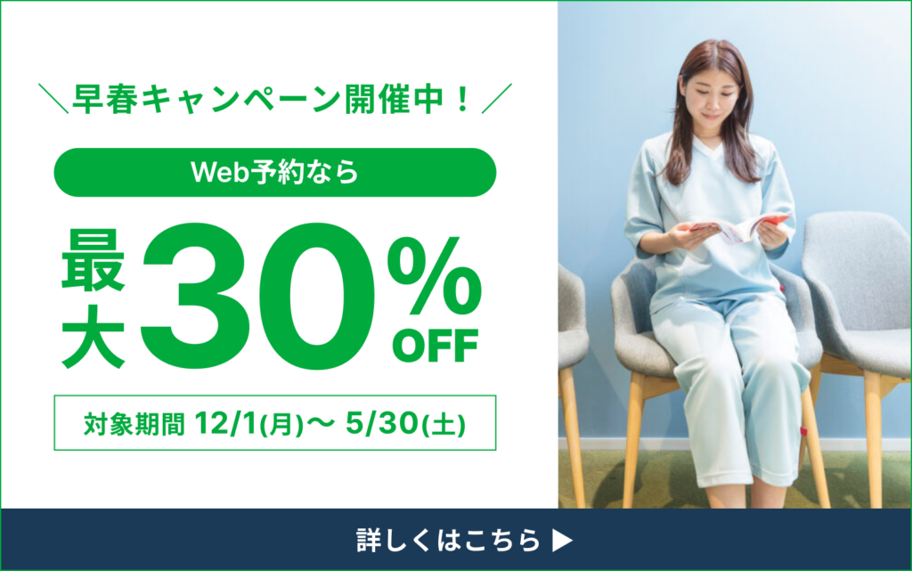 12月1日(月)〜3月31日(火)までの期間、Webからのご予約でお得にご利用いただける「早春キャンペーン」を実施中です!