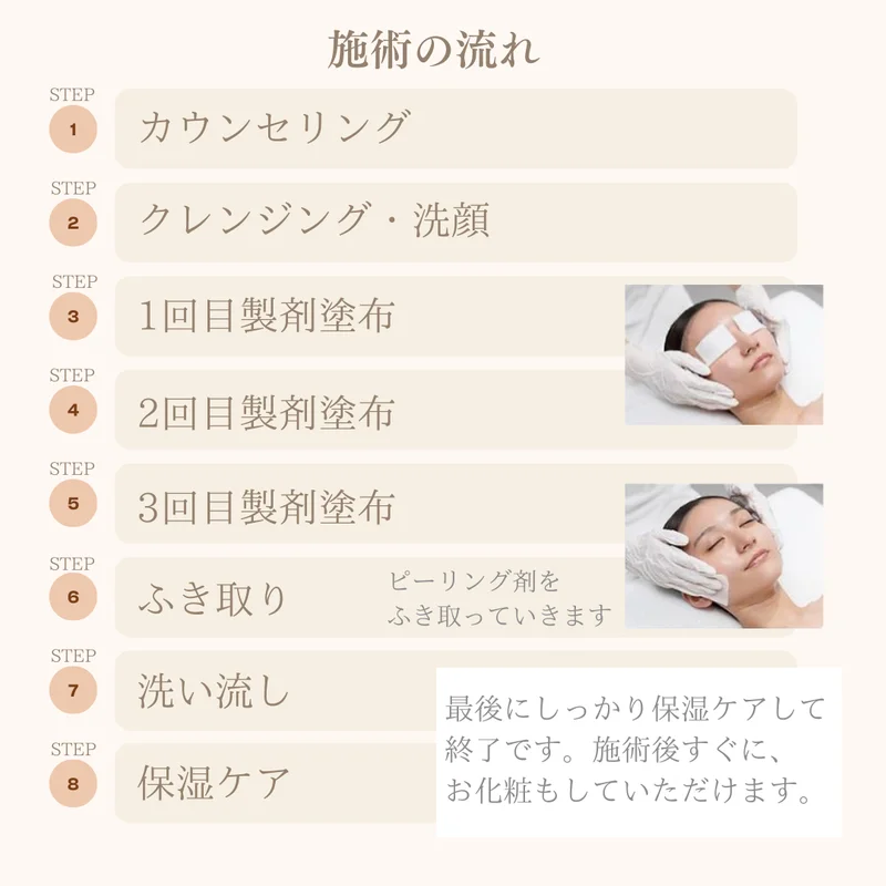 - ピーリング後は、お肌が一時的に乾燥しやすくなることがありますが、一時的なものですぐにおさまります。