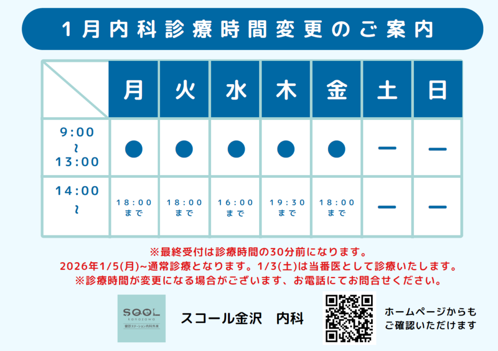 担当医・診療時間の変更により、ご迷惑をおかけいたしますが、何卒ご理解のほどよろしくお願い申し上げます。